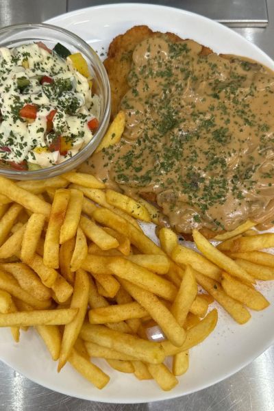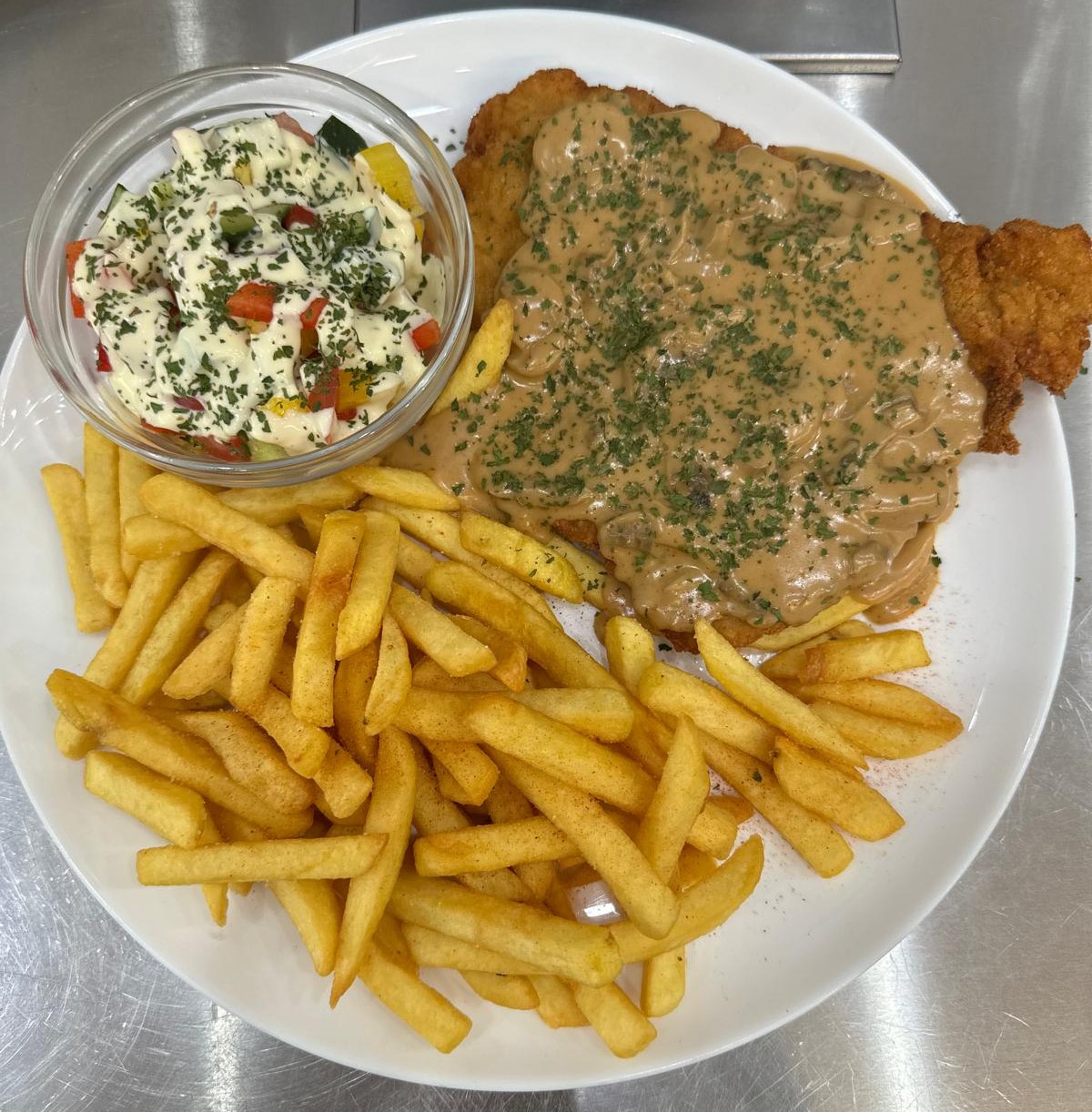 Zwiebelschnitzel mit gedünsteten Zwiebeln